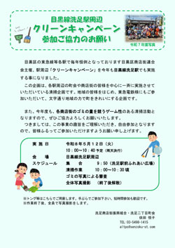目黒線洗足駅周辺「クリーンキャンペーン」参加ご協力のお願い